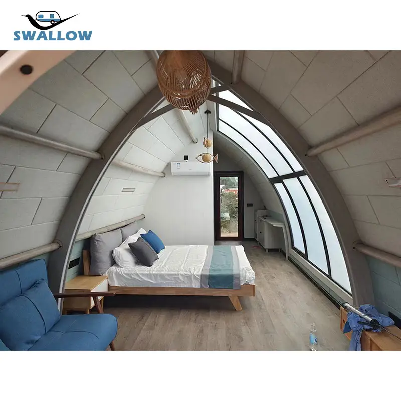 Houseboats can be fixed structures on water or structures on floating platforms. These homes often feature water-related design elements such as large windows for water views, spacious decks or pier for recreational activities, and boat docks. Houseboat design and decoration vary depending on location and use, but overall they combine natural elements with modern conveniences to provide residents with a unique living experience.